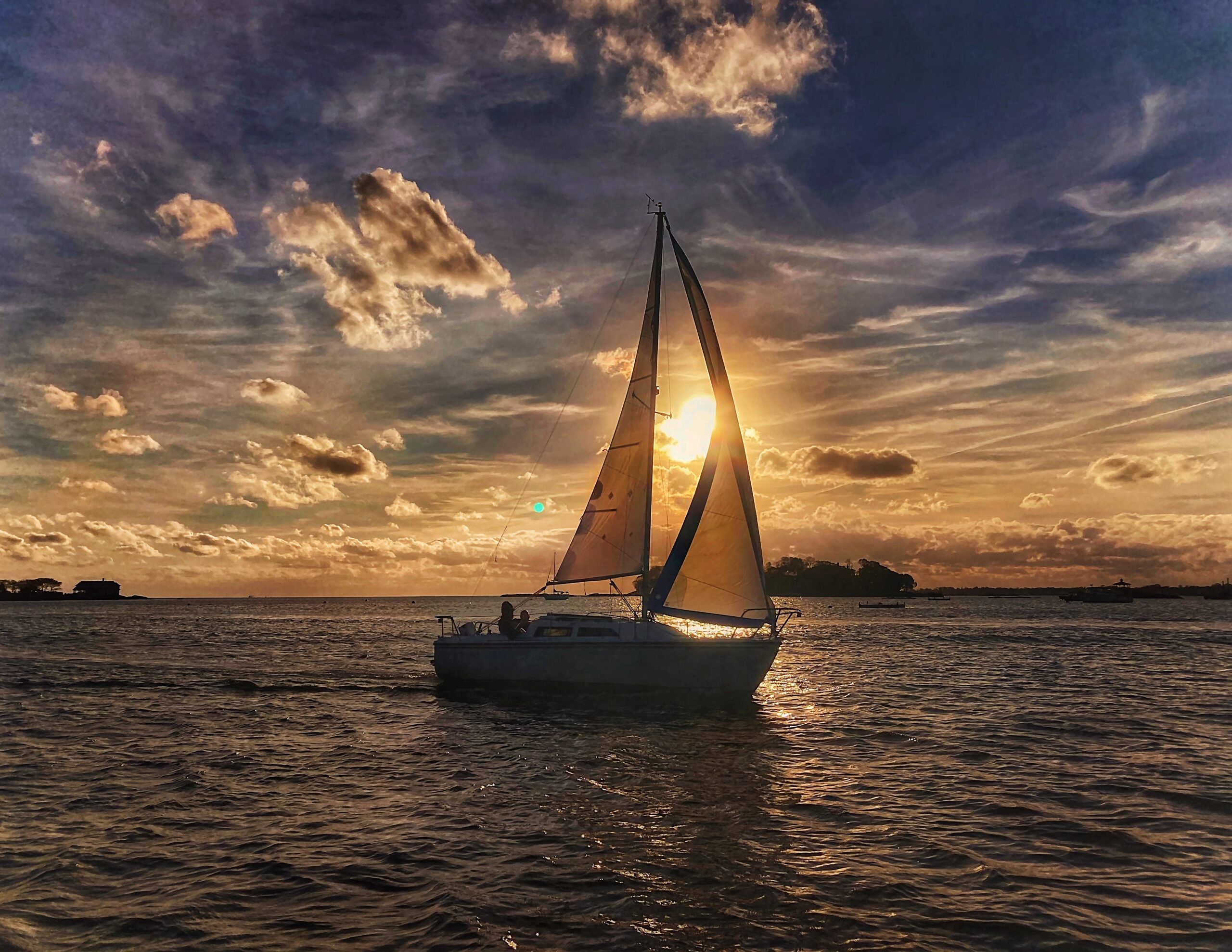 There’s something truly unique about experiencing the season from our boat. On land, the colors are beautiful, but from the deck of the Volsunga, you get a whole new perspective. Every moment feels like stepping into a living postcard. The leaves reflect off the water, the islands seem to glow in the late afternoon sun, and the air carries the cool, crisp essence of autumn along with the gentle whisper of the waves. And as the day draws to a close, the fall sunsets over the Thimble Islands are simply breathtaking, casting a golden and fiery glow across the islands— a perfect end to any trip.